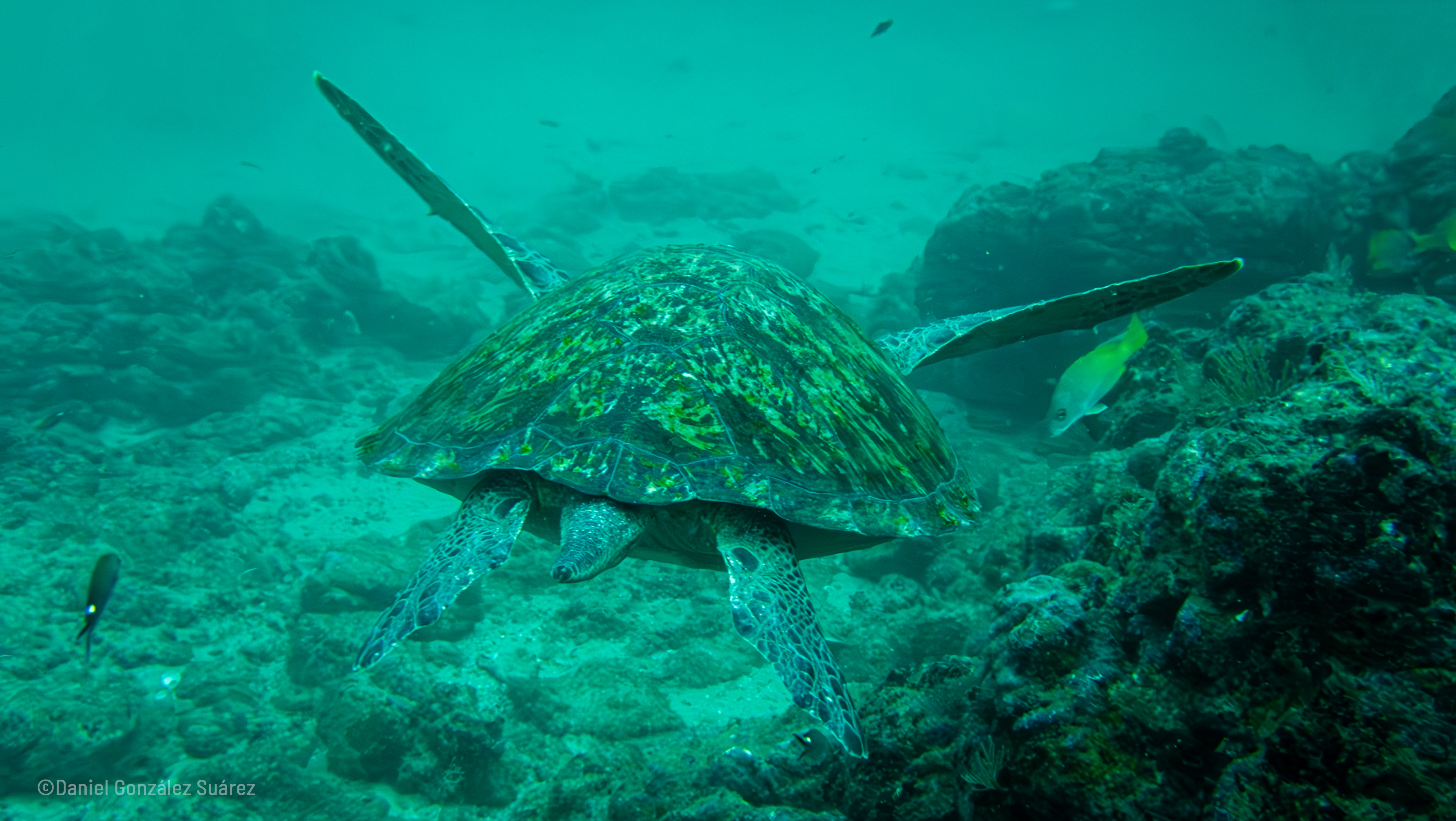 While diving, I’ve seen turtles before but this dive had the most amount of sea turtles I’ve seen! I think I saw two species: the green sea turtle Chelonia mydas and the critically endangered hawksbill turtle Eretmochelys imbricata. The pictures I took of the hawksbill turtle weren’t good and a thing that didn’t help was that other divers from the group were lifting sand with their fins. It’s important to get your buoyancy right!